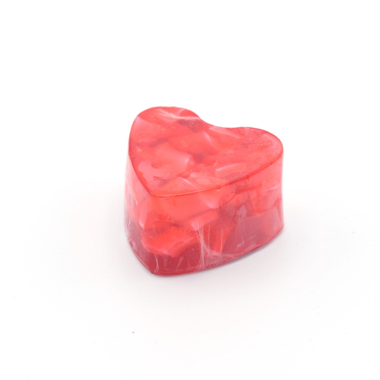 Zeep op basis van glycerine en etherische olie en kleuren uit de levensmiddelindustrie.