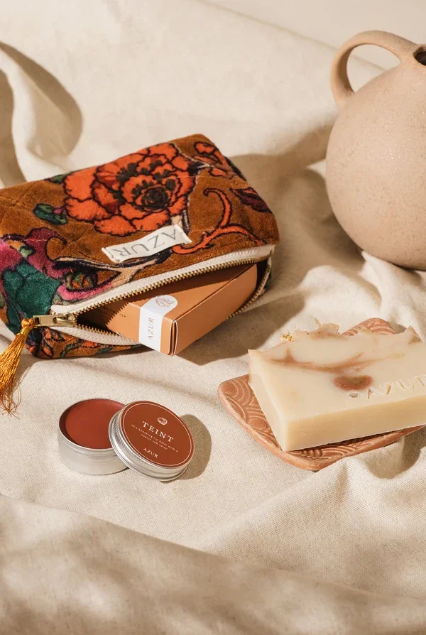 Ingrediënten : Verzeepte olijfolie, verzeepte kokosolie, verzeepte cacaoboter, verzeepte zoete amandelolie, water, glycerine, verzeepte sheaboter, verzeepte ricinusolie, etherische cederhoutolie, illietklei, etherische olie van patchouli, essentiële olie van sinaasappel, essentiële olie van kaneel, kurkuma, porseleinaarde, calendulabloem, maanzaad